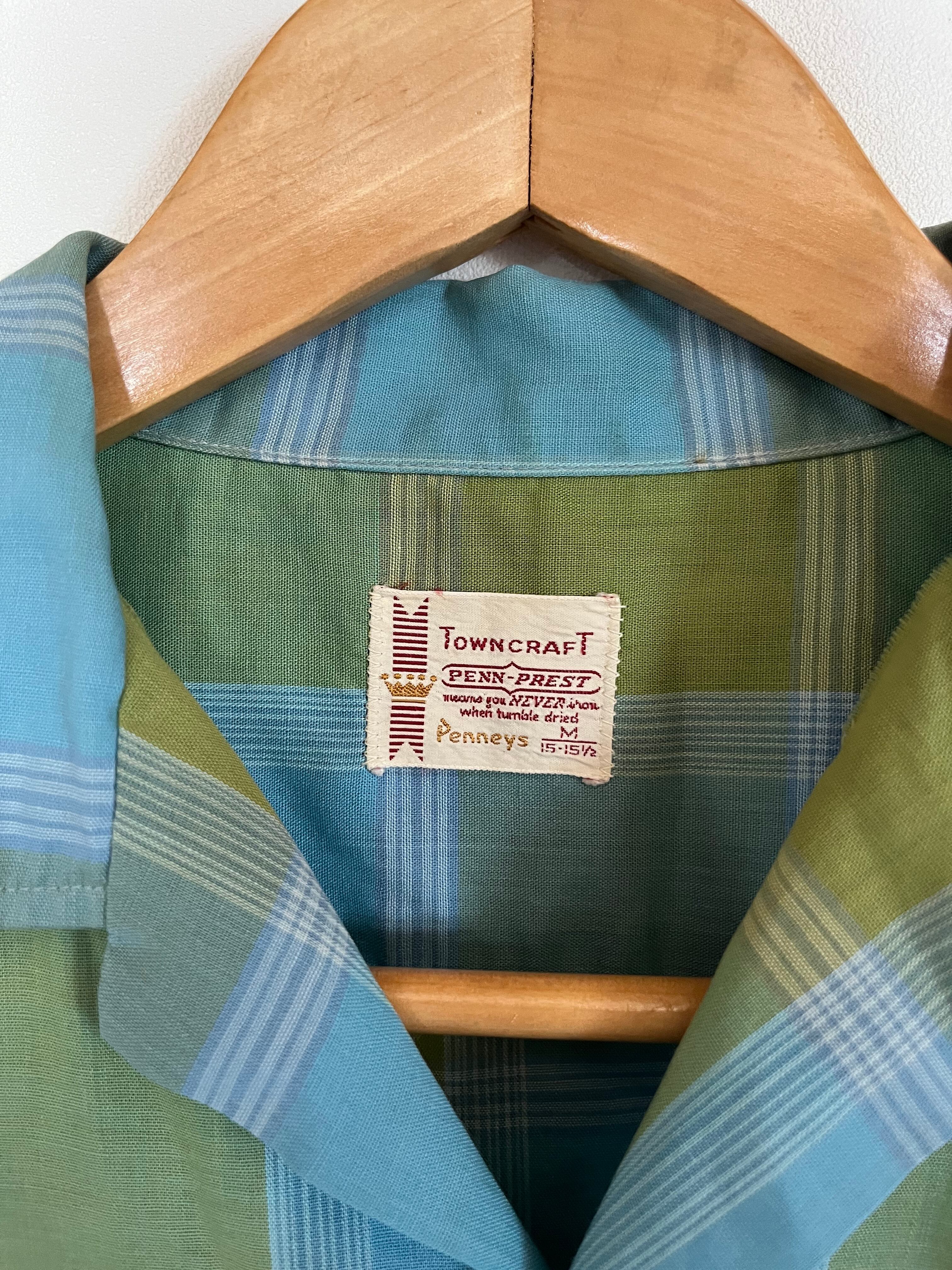 60年代ペニーズタウンクラフトのオンブレレーヨンシャツとなります。人気のグリーンブルーでイエローが混ざったMIXカラーシャドーチェックとなります。BOXシルエットで襟芯付です。復刻ではなく当時オリジナルとなります。色味もカッコいいので、お探しの方はご検討宜しくお願い致します。